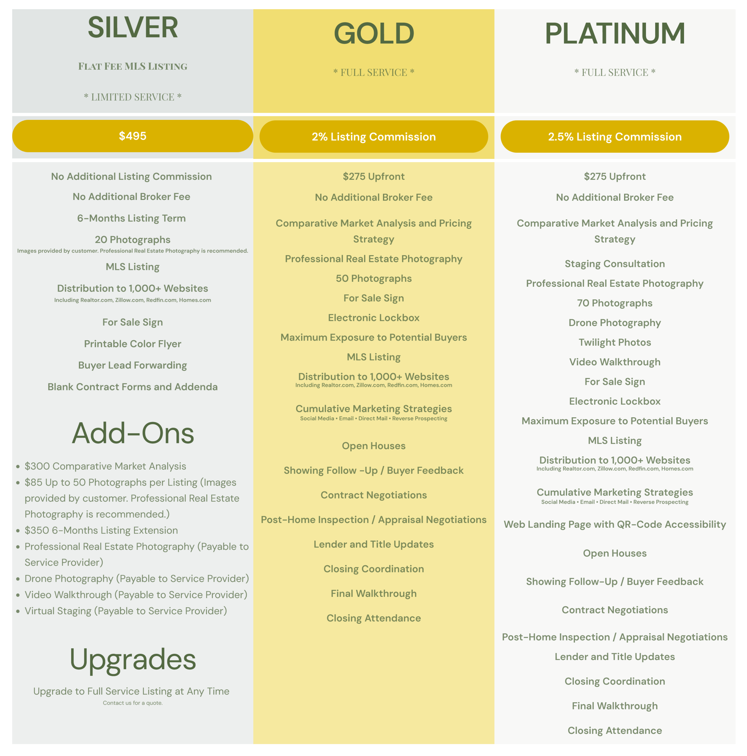 Sell Flat Fee or Low Commission Listing Plans A Boutique-Style Brokerage for Today's Real Estate Market Not Sure Which Plan Is Right For You? Just give us a call or book a complimentary consultation. Contact Us